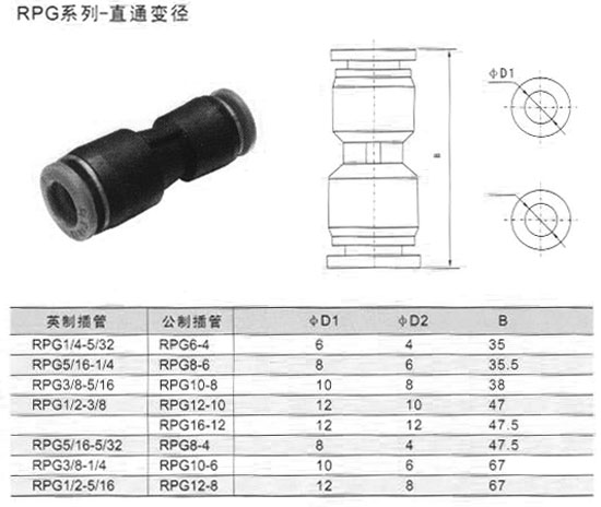 RPG1/4-5/32,RPG5/16-1/4,RPG3/8-5/16,RPG6-4,RPG8-6,RPG10-8,RPG12-10,直通變徑接頭