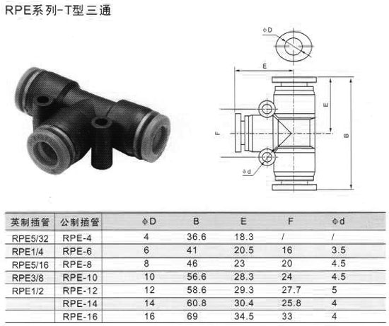 RPE5/32,RPE1/4,RPE5/16,RPE3/8,RPE1/2,RPE-4,RPE-6,RPE-8,RPE-10,RPE-12,T型三通接頭