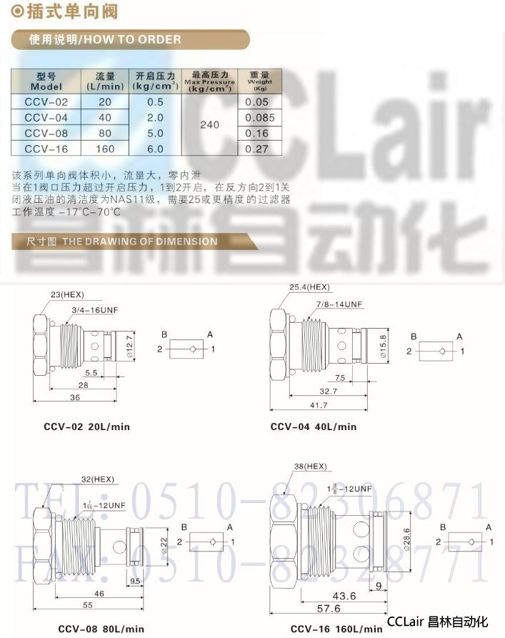 CCV-02,CCV-04,CCV-08,CCV-16,插式單向閥