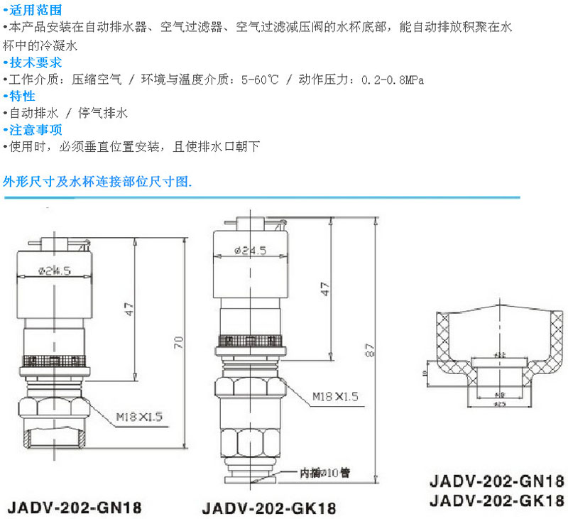 詳細信息 JADV-202-GN18,JADV-202-GK18,自動排水器