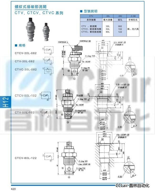 CTCV-30L-082,CTV-30L-082,CTVC-30L-082,螺紋式插裝節(jié)流閥