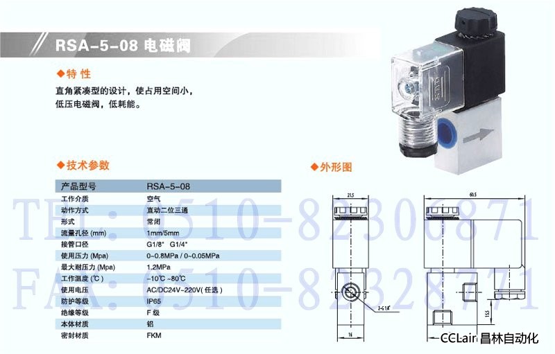 詳細(xì)信息 RSA-5-08,直動(dòng)二位三通電磁閥