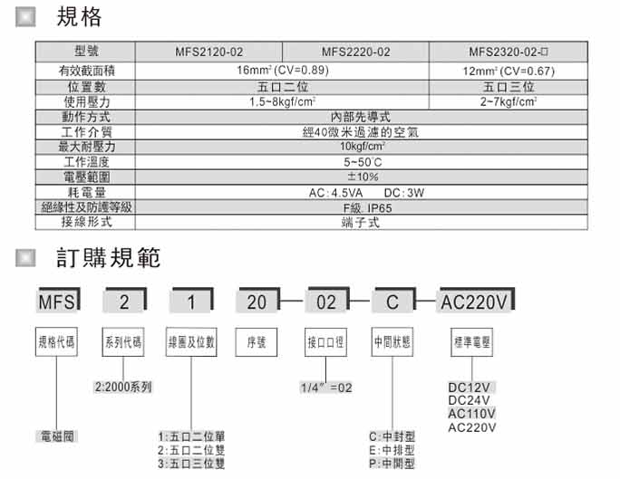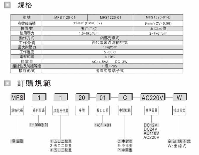 電磁閥 MFS1120-01C-DC12V,MFS1120-01C-DC24V,MFS1120-01C-AC110V,MFS1120-01C-AC220V