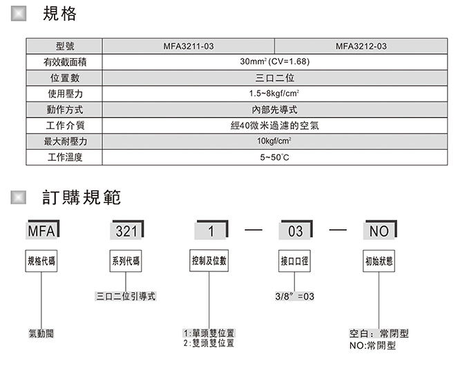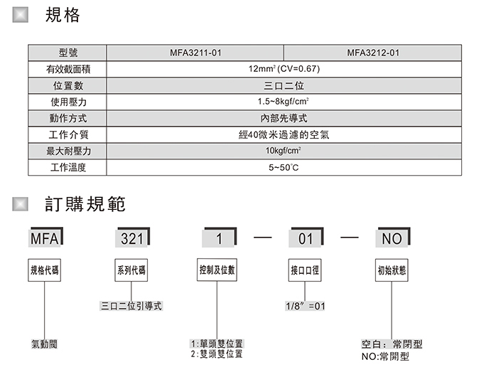 電磁閥 MFA3211-01,MFA3211-01-NO,MFA3212-01,MFA3212-01-NO,MFA3211-02,MFA3211-02-NO