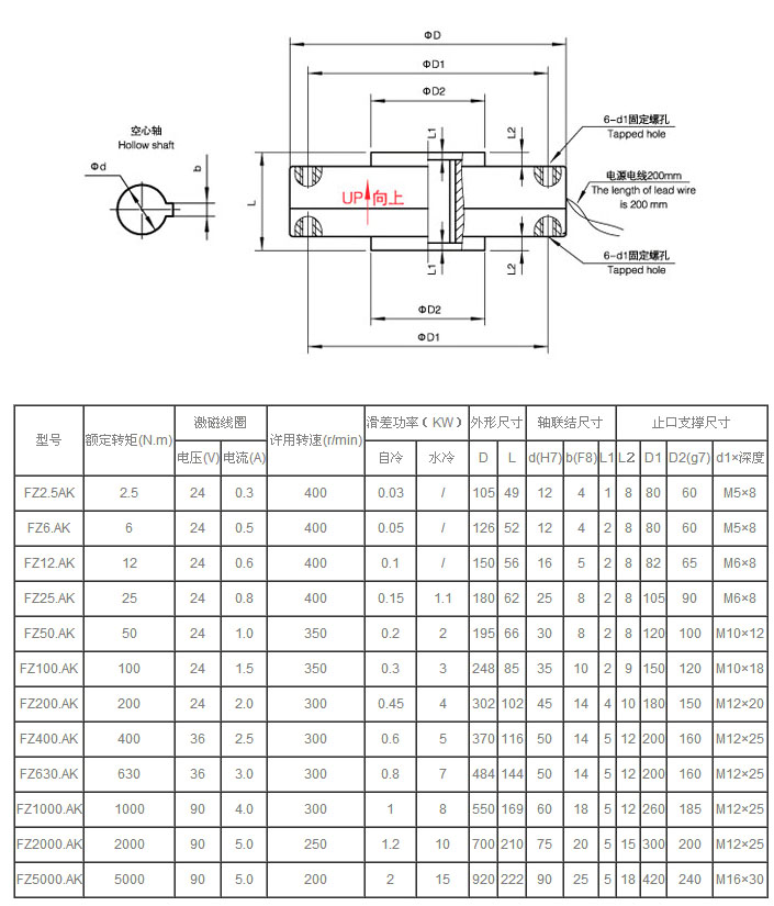 FZ2.5AK,FZ6.AK,FZ12.AK,FZ25.AK,FZ50.AK,FZ100.AK,FZ200.AK,FZ400.AK,FZ630.AK, FZ1000.AK,FZ2000.AK,FZ5000.AK,磁粉制動器