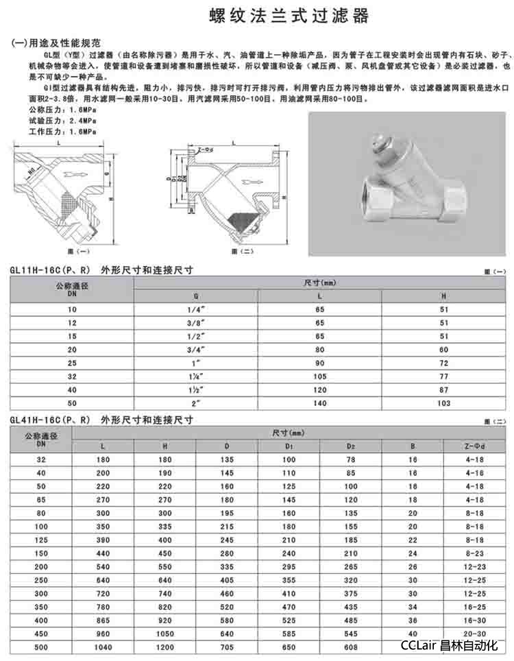 GL11H-16C,GL11H-16P,GL11H-16R,GL41H-16P,GL41H-16R,螺紋法蘭式過濾器