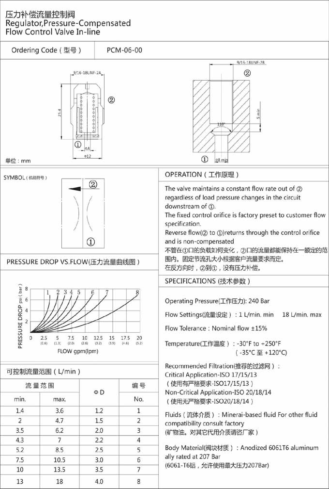 產(chǎn)品: 瀏覽次數(shù):759PCM-06-00,壓力補償流量控制閥