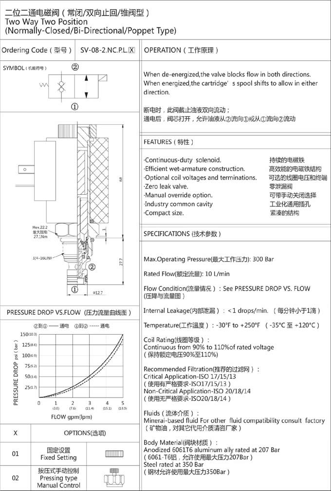 產(chǎn)品: 瀏覽次數(shù):499SV-08-2NCPL,二位二通電磁閥