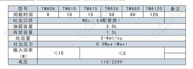 TM606,TM610,TM615,TM630,TM660,TM6120,TM,間歇自動潤滑泵