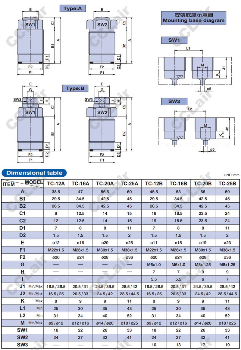 TC-16A2,TC-20A1,TC-25A1,TC-12B2,TC-16B2,TC-20B1,TC-25B1,