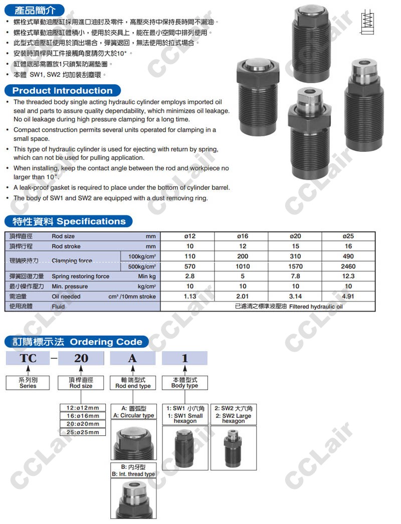 詳細信息 臺灣聯(lián)鎰(amac),TC-12A1,TC-16A1,TC-20A2,TC-25A2,TC-12B1,TC-16B1,TC-20B2,TC-25B2,TC-12A2,螺栓式單動油壓缸