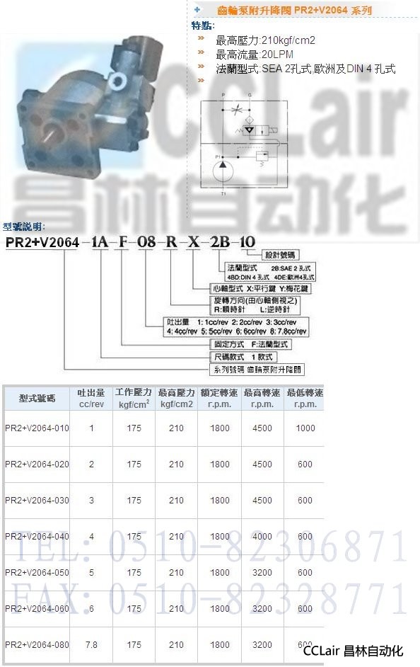 PR2+V2064-1A-F-06-R-Y-2B-10,無錫昌林,PR2+V2064-1A-F-06-R-Y-4BD-10,