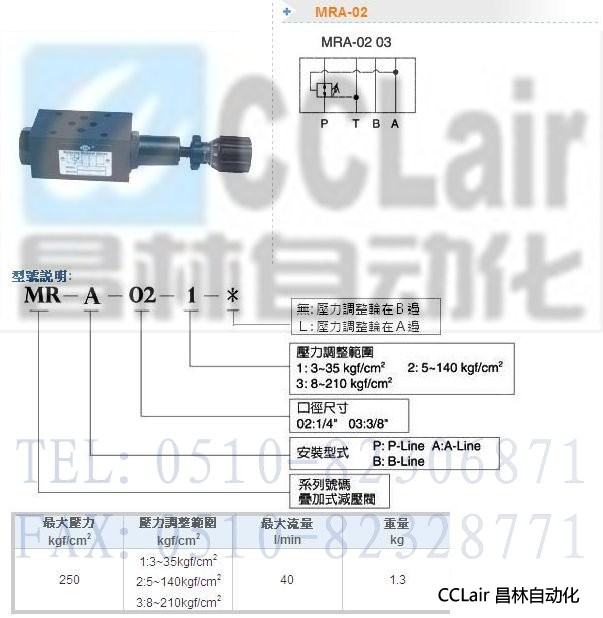 詳細(xì)信息 MRA-02-1,MRA-02-1-L,MRA-02-2,MRA-02-2-L,疊加式減壓閥