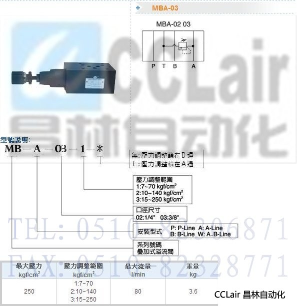 MBA-03-1,MBA-03-2,MBA-03-3,疊加式溢流閥
