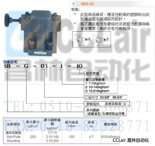 詳細信息 SBG-03-1-10,SBG-03-2-10,SBG-03-3-10,溢流閥