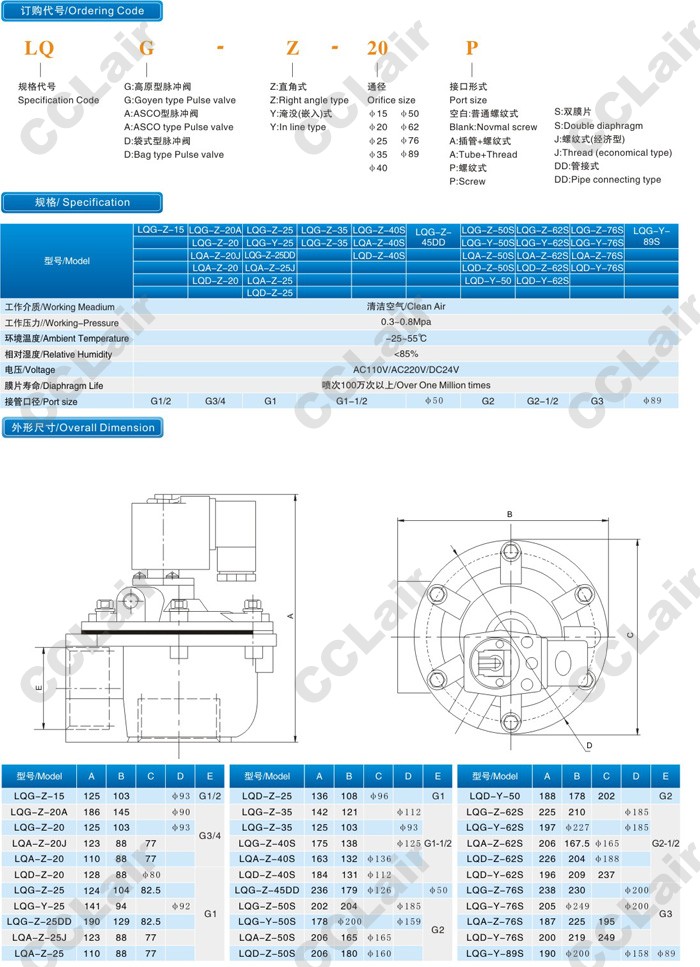 LQG-Z,LQG-Y,LQA-Z,LQA-Y,LQD-Z,LQD-Y,LQD-Z-20,LQG-Y-50S,LQA-Z-62S,脈沖閥