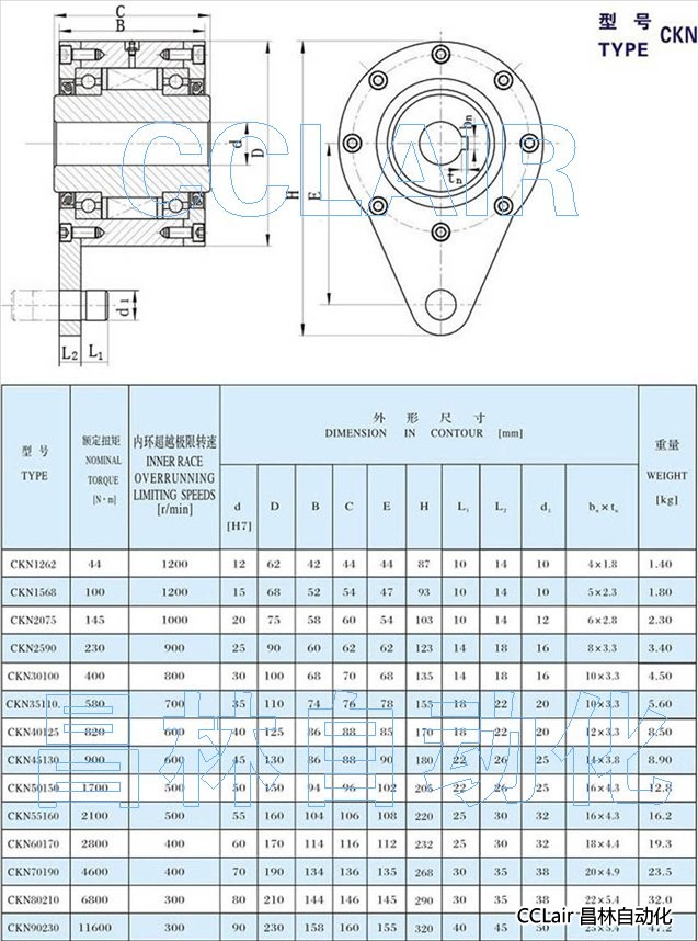 CKN1262,CKN1568,CKN2075,CKN2590,CKN30100,CKN35100,CKN40125,單向離合器