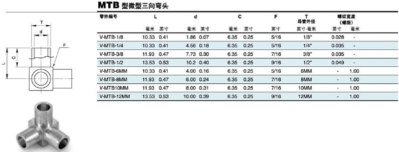 詳細信息 V-MTB-1/8,V-MTB-1/4,V-MTB-3/8,V-MTB-1/2,V-MTB-6MM,V-MTB-8MM,V-MTB-10MM,V-MTB-12MM,微型三向彎頭