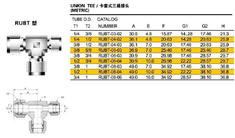 RUBT-03-02,RUBT-04-02,RUBT-04-03,RUBT-05-03,RUBT-06-03,RUBT-06-04,卡套式三通接頭