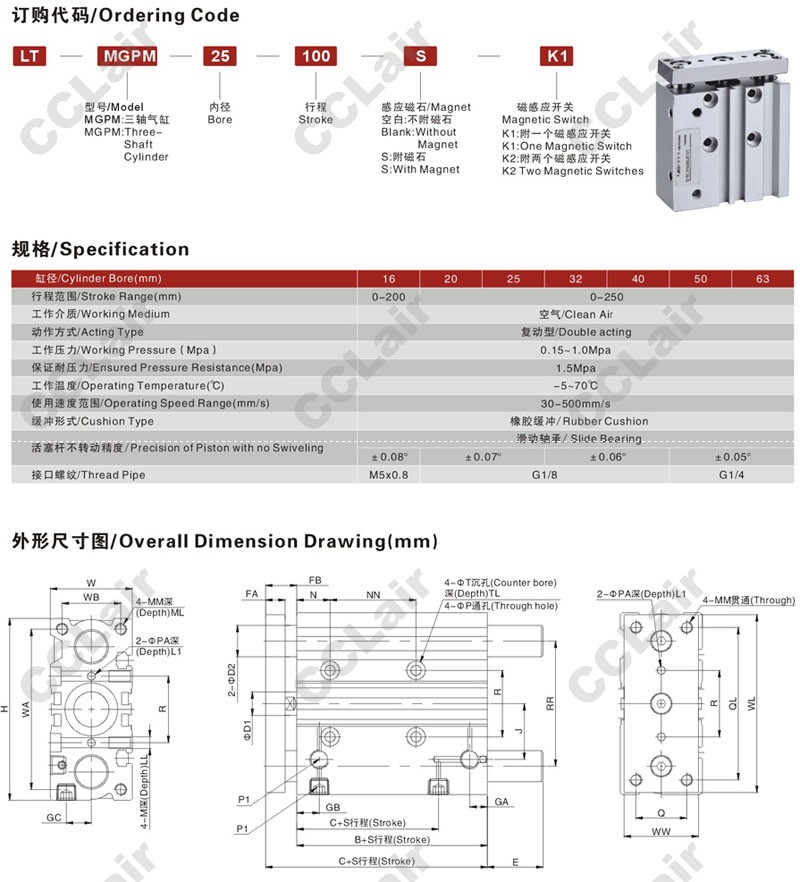 LTMGPM-16,LTMGPM-20,LTMGPM-25,LTMGPM32,LTMGPM40,LTMGPM-50,LTMGPM-63,LTMGPM63×100,三軸氣缸