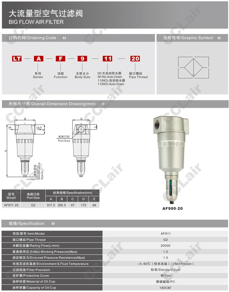 AF911-20,大流量型空氣過濾閥 |