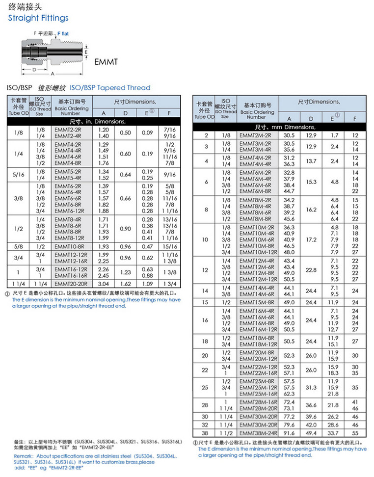 EMMT2-2R,EMMT6-2R,EMMT8-4R,EMMT10-8R,EMMT16-12R,EMMT20-20R,直通終端卡套接頭