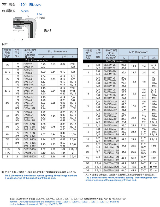 EME2-2N,EME3,EME4,EME5,EME6,EME8,EME10,EME12,EME20,EME24,EME32,直角終端卡套接頭