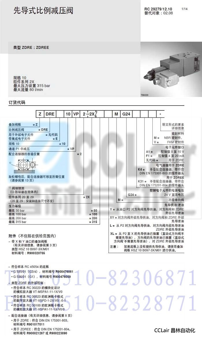 ZDRE10VP2-2X/315YMG24K4M, ZDRE10VP2-2X/50YMG24K4M, 先導(dǎo)式比例減壓閥,力士樂(lè)REXROTH,德國(guó)力士樂(lè)