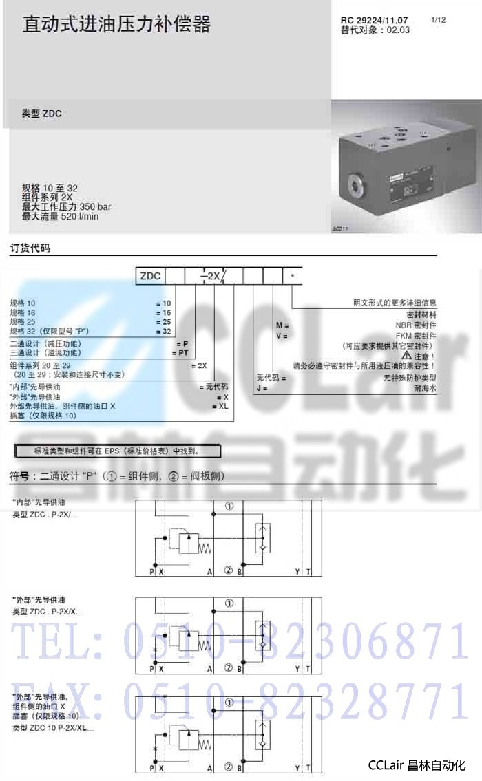 詳細信息 ZDC16P-2X/M,ZDC16P-2X/V,ZDC16P-2X/JM,ZDC16P-2X/XM, 壓力補償器,力士樂REXROTH,德國力士樂
