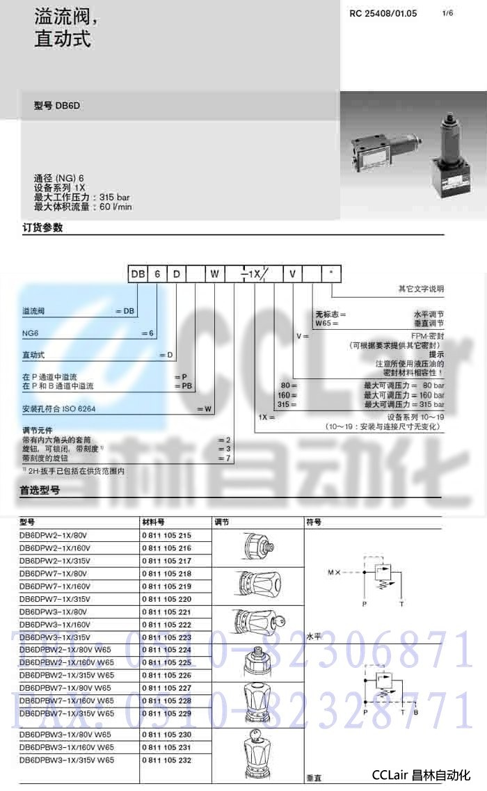 型號: DB6DPW3-1X/80V,DB6DPBW3-1X/80VW65,