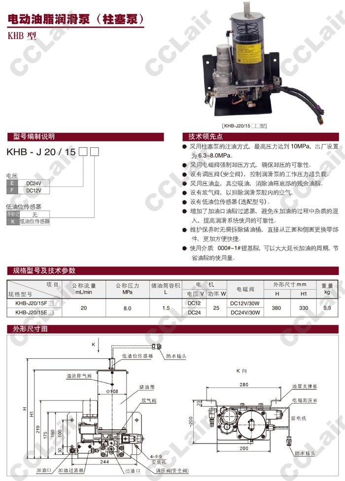 詳細(xì)信息 KHB-J20/15F,KHB-J20/15E,電動(dòng)油脂潤(rùn)滑泵