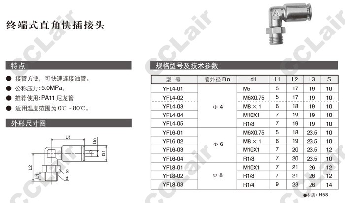 YFL4,YFL6,YFL8,YFL8-01,YFL8-02,YFL4-03,YFL4-04,YFL6-01,YFL6-02,終端式直通快插接頭