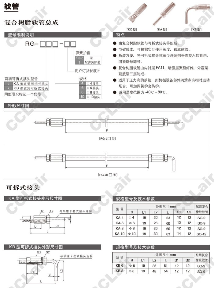 詳細信息 KA-4,KA-6,KA-8,KA-10,KB-6,KB-8,可拆式接頭