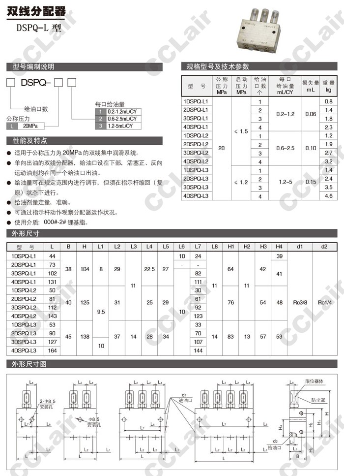 詳細信息 1DSPQ,2DSPQ,3DSPQ,4DSPQ,1DSPQ-L1,2DSPQ-L2,3DSPQ-L3,4DSPQ-L3,雙線分配器