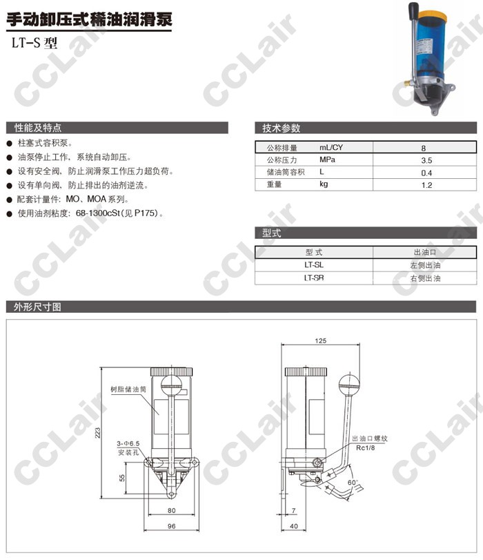 型號: LT-SL,LT-SR,手動泄壓式稀油潤滑泵