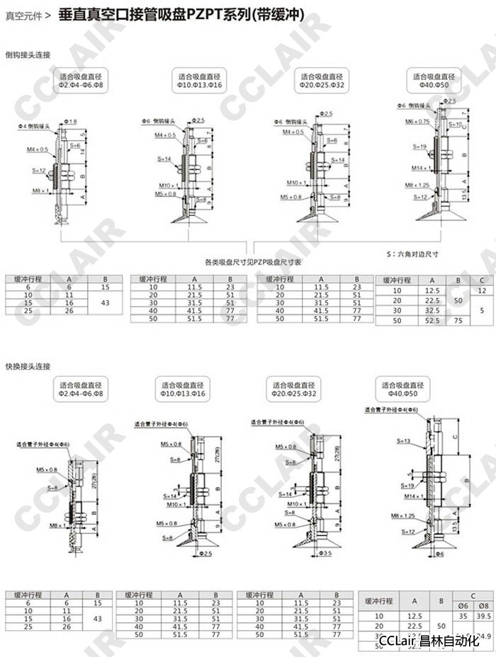 PZPT06UK6,PZPT08UK6,PZPT10UK6,PZPT13UK6,PZPT16UK6,PZPT20UK6,垂直真空口接管吸盤