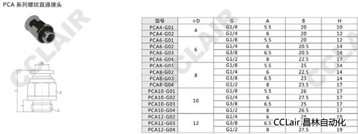 PCA4,PCA6,PCA8,PCA10,PCA12,螺紋直通接頭