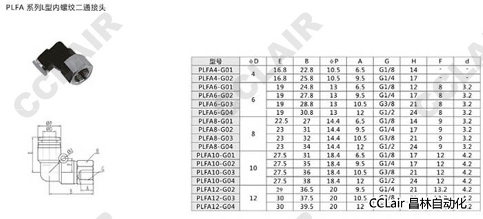 PLFA4,PLFA6,PLFA8,PLFA10,PLFA12,L型內(nèi)螺紋二通接頭