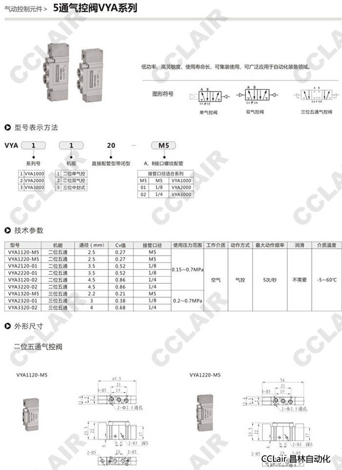 詳細(xì)信息 VYA1120-02,VYA1220-02,VYA1320-02,VYA2120-02,VYA2220-02,VYA2320-02,5通氣控閥