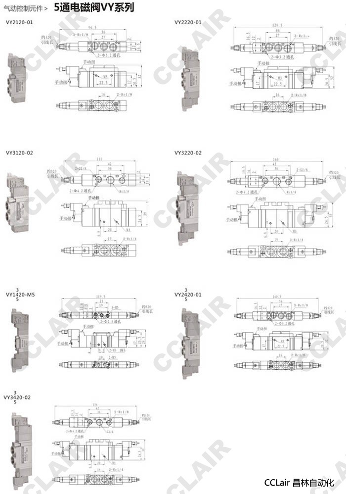 詳細信息 VY3520-M5,VY1120-01,VY2120-01,VY3120-01,VY1220-01,VY2220-01,5通電磁閥
