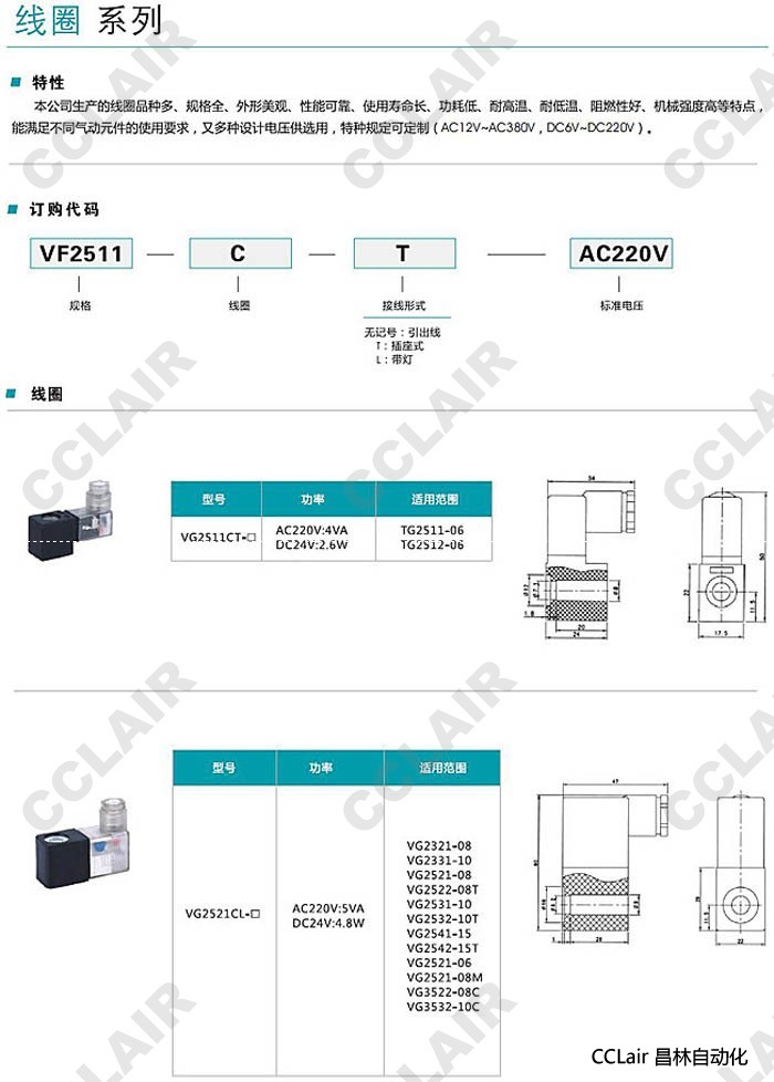 詳細(xì)信息 VF2511C-AC220V,VF2511CT-AC220V,VF2511CL-AC220V,線圈