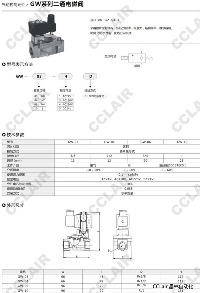 詳細信息 GW-03,GW-04,GW-06,GW-10,二通電磁閥