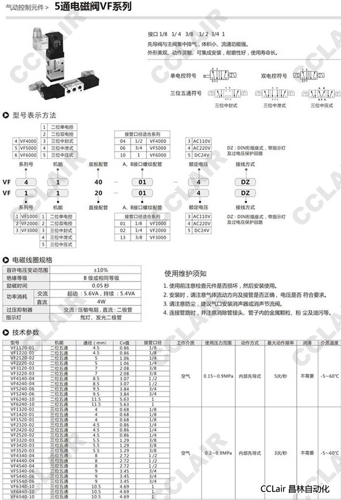 VF1120-01,VF1220-01,VF1320-01,VF1420-01,VF1520-01,5通電磁閥