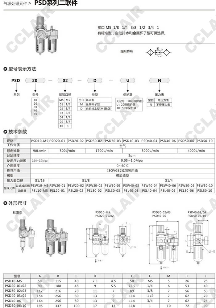 PSD10-MS,PSD10-01,PSD10-02,PSD10-03,PSD10-04,PSD10-06,PSD10-10,氣動二聯(lián)件