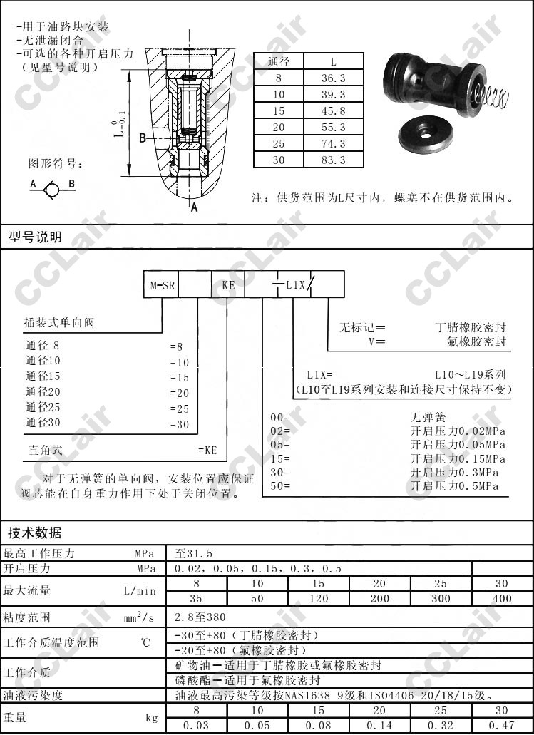 M-SR8KE00-L1X,M-SR10KE02-L1X,M-SR15KE05-L1X,M-SR20KE15-L1X,M-SR25KE30-L1X,M-SR30KE50-L1X,插裝式單向閥