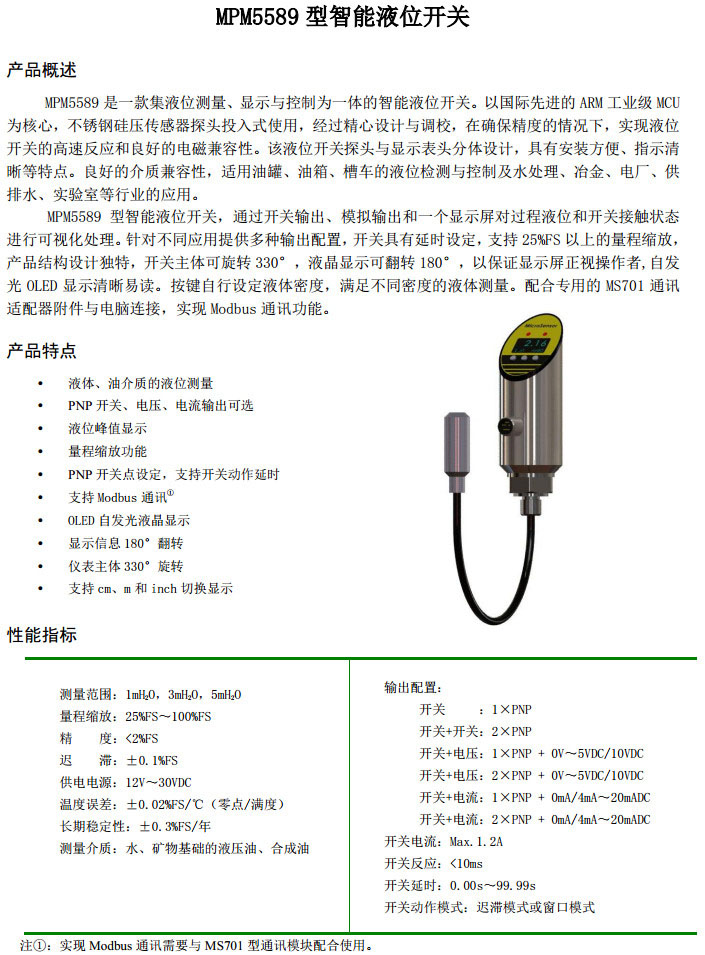詳細(xì)信息 MPM5589-X1,MPM5589-X2,MPM5589-X3,智能液位開關(guān)