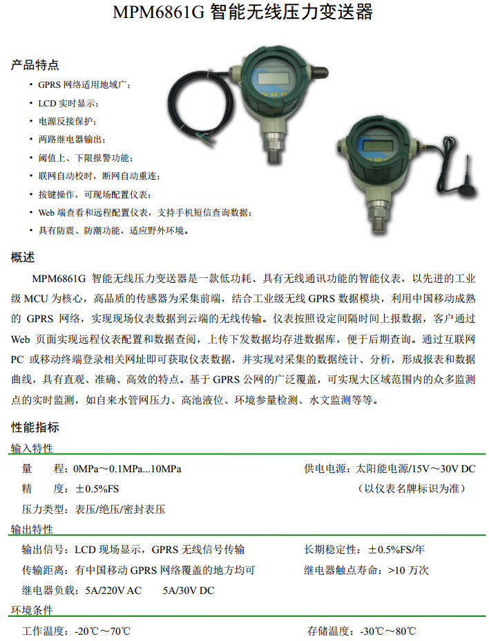 MPM6861G-0G,MPM6861G-0.1G,MPM6861G-0.1A,MPM6861G-10A,MPM6861G-0S,智能無(wú)線壓力變送器