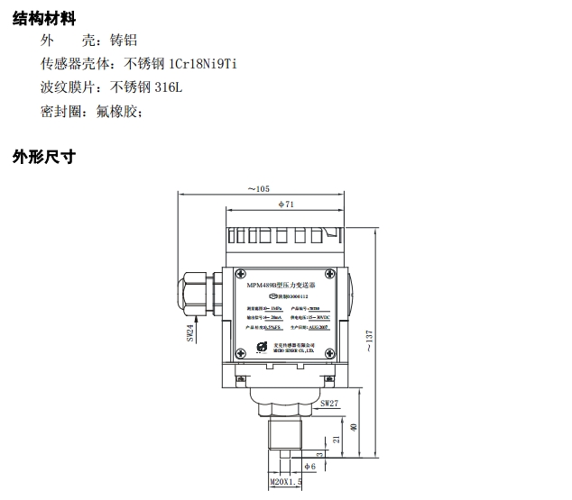 詳細(xì)信息 MPM489B-0.1,MPM489B-0,MPM489B-0.02,MPM489B-100,壓力變送器