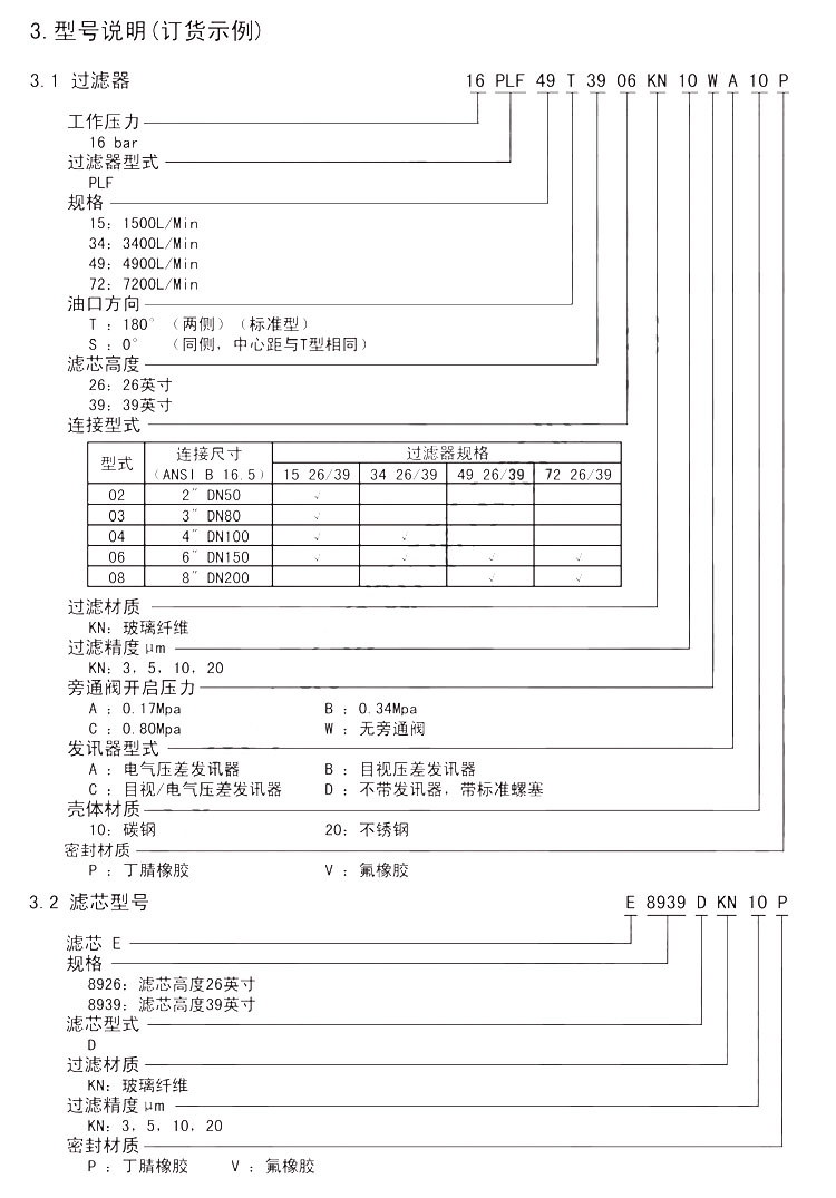 型號: 16PLF15,16PLF34,16PLF49,16PLF72,16PLF15T2602KN3,16PLF34T2604KN3,16PLF49T2608KN3,單筒管路過濾器
