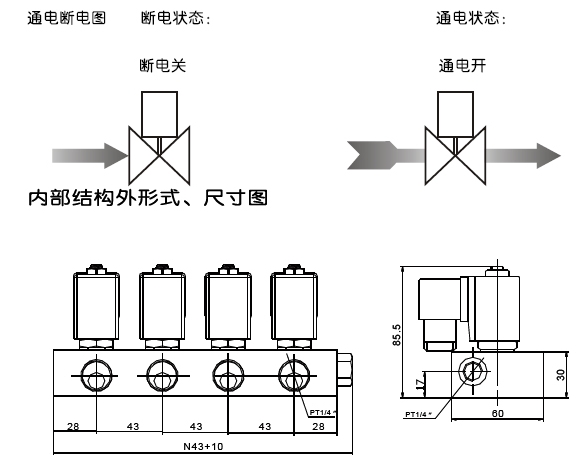 環(huán)境溫度:0~65℃按閥上所標(biāo)流向箭頭,一進(jìn)多路出(N)